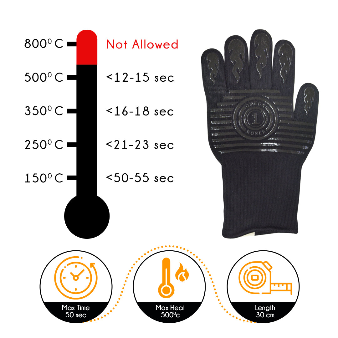 Barbeque Gloves Aramid Fabric Best for camping, Picnic, oudoor picnic party. Made from Aramid fabric which is high heat resistance and does not catch fire.