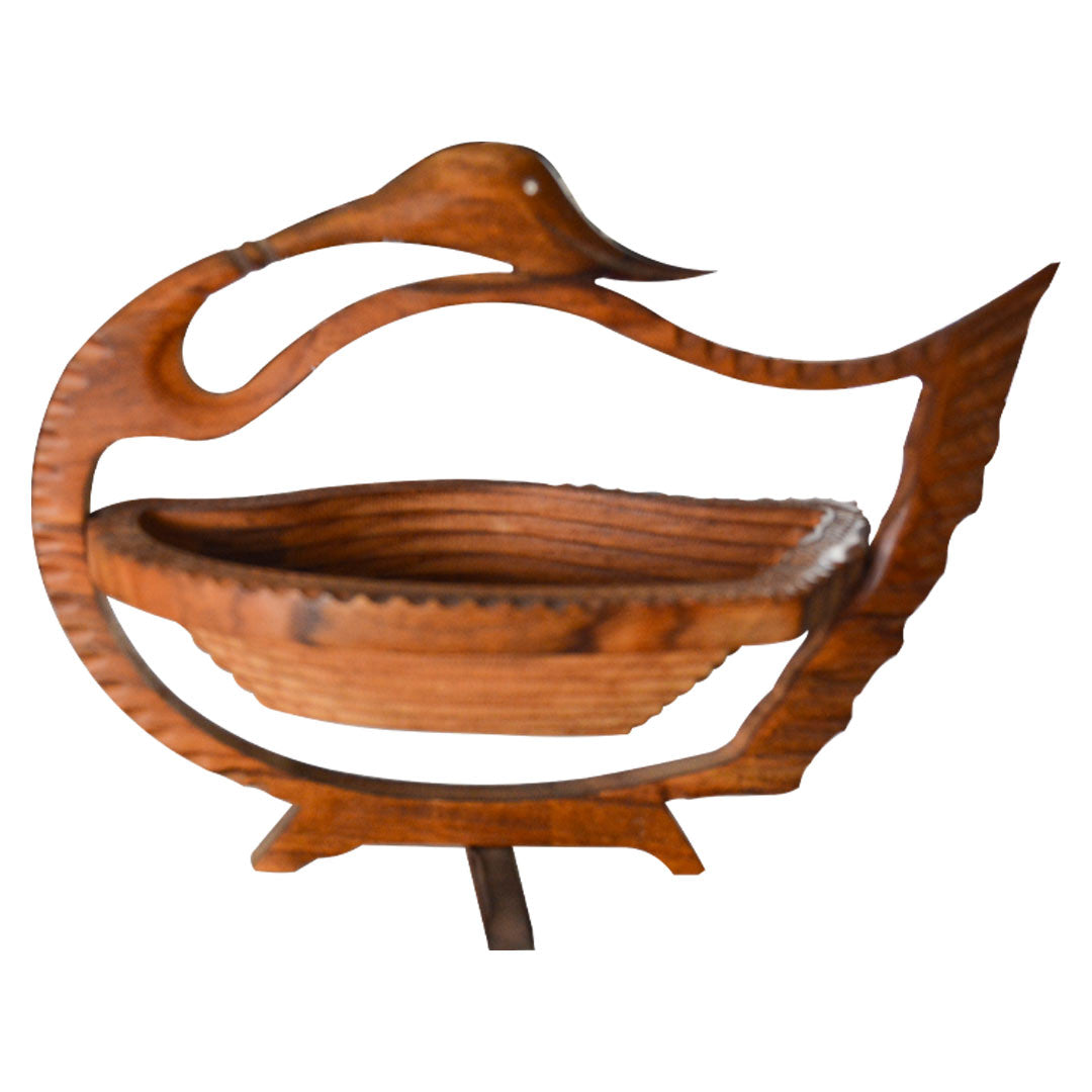 صينية تقديم خشبية مزخرفة مصنوعة يدويًا على شكل بطة لتقديم الوجبات الخفيفة والفواكه